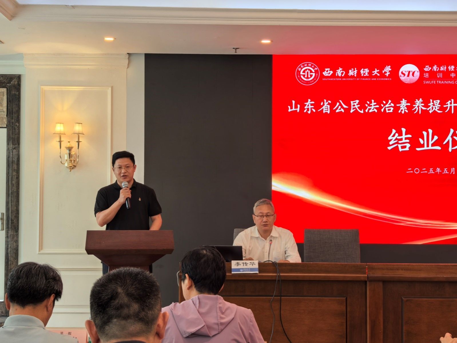 为贯彻落实习近平总书记“不断提升全体公民法治意识和法治素养” 重要指示精神,根据全国、全省 “八五” 普法规划和省委政法委有关培训计划要求,山东省司法厅公民法治素养提升行动专项普法培训班于近期在西南财经大学举办。山东省各市司法局分管负责同志和普法依法治理科(处)长,县(市、区)司法局普法依法治理工作负责人,部分省有关部门、单位法治工作机构负责同志,省司法厅有关处室负责同志共计90人参加培训。