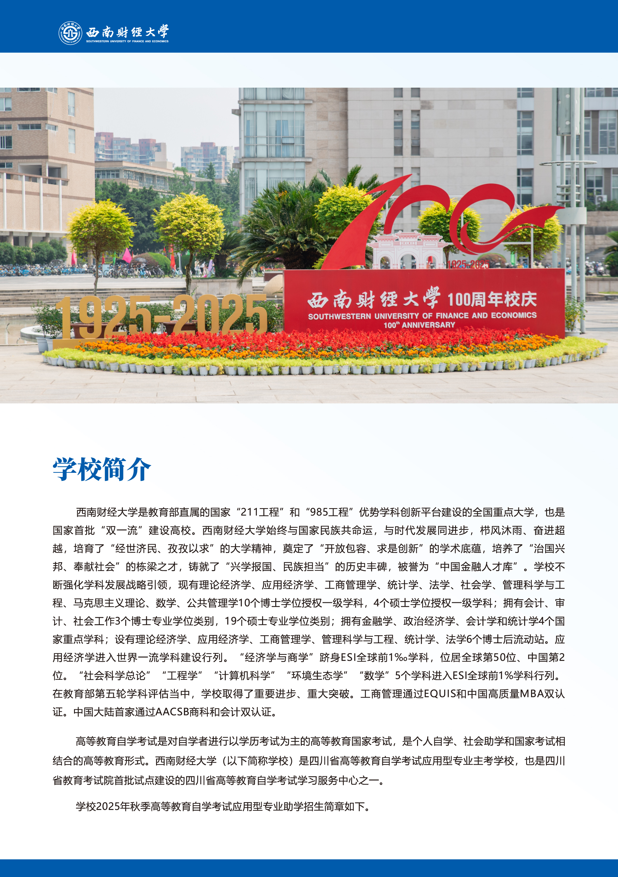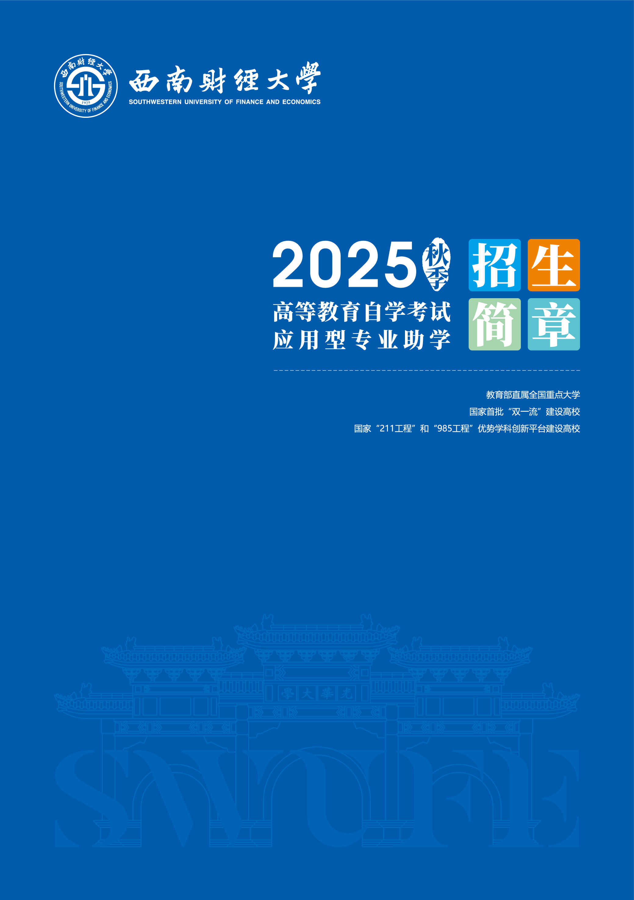 西南财经大学2025年秋季高等教育自学考试应用型专业助学招生简章