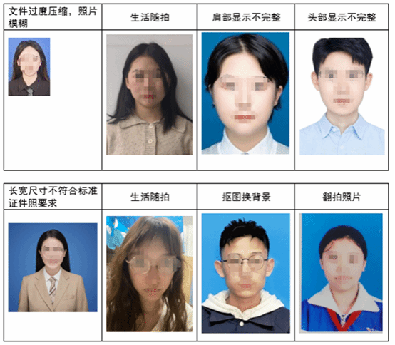 2.照片信息:报名网站(http://cet-bm.neea.edu.cn)无照片或照片有误(照片无误的不得更换照片)。