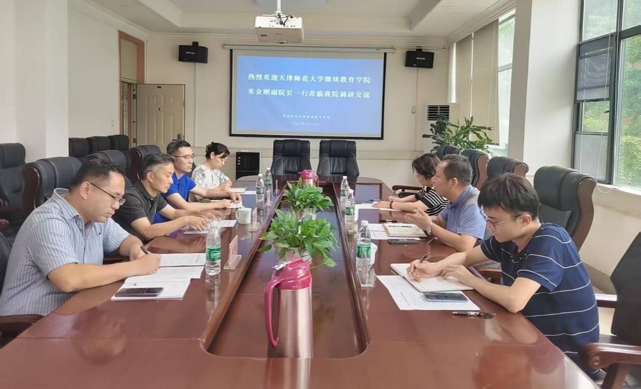 6月20日下午,天津师范大学继续教育学院米金刚副院长一行莅临我院调研交流。曾朝夕院长、李杰副书记出席调研座谈会,两院有关部门负责人参加座谈交流。
